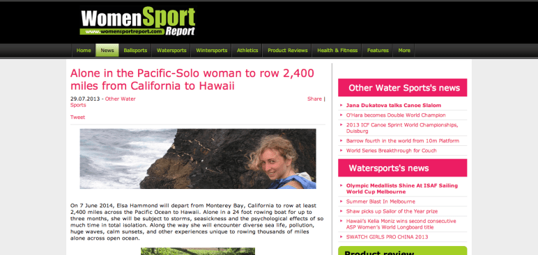 Women Sport Report: Alone in the Pacific – Solo woman to row 2,400 miles from California to Hawaii