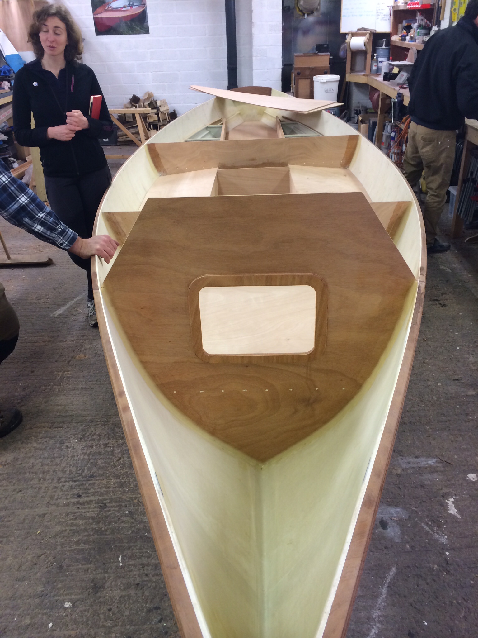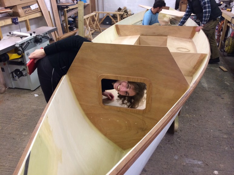 It is similar to other ocean rowing boats that Justin has built, but with improvements and adaptations. There is a space for the anchor to live right in the stern, and my sleeping space is slightly indented, meaning that I will be more snug and will not roll around so much. It also means that the hatches on each side of my bed are a little deeper than usual (more space for snacks!), and I can use them a bit more like shelves and a desk.