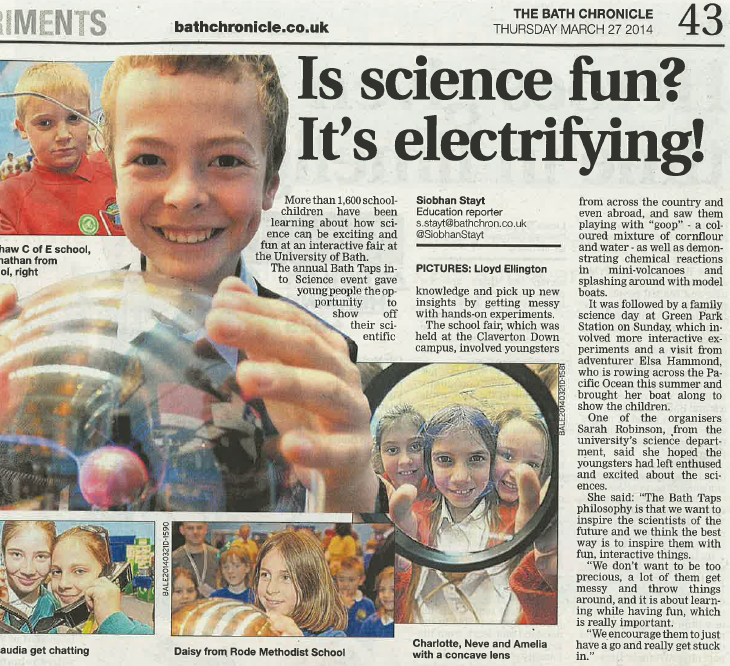 Bath Chronicle: Bath Taps into Science Posted on March 27, 2014May 22, 2015 by Steve Bullock Elsa was mentioned in the Bath Chronicle’s article about the Bath Taps into Science festival at which she exhibited her boat and spoke about the challenge and opportunity of her row. Share this: Click to share on X (Opens in new window) X Click to share on Facebook (Opens in new window) Facebook Like Loading... Related